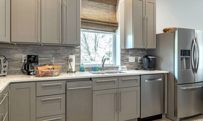 Welcome to your perfect urban oasis! This lovely 1 bedroom, 1 bathroom home offers an open floor plan full of natural light, making it the ideal space for entertaining and relaxation. The newly renovated kitchen is equipped with modern appliances and plenty of storage, so you can cook up delicious meals in no time. Enjoy warm summer days lounging at the shared pool (POOL WILL BE CLOSING THE THIRD WEEK OF OCTOBER 2023) with friends or take a stroll around the neighborhood—you'll find endless opportunities for fun nearby. The rental pool is shared with the house in front facing the street-, Bungalow Bill. For large groups rent both homes: click the link https://www.sarahbernardchalets.com/755044/