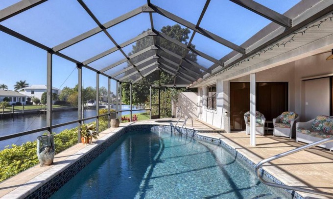 1140 La Palma offers accommodations in Punta Gorda, 2.3 miles from Fishermen's Village and 20 miles from Warm Mineral Springs. This vacation home offers air-conditioned accommodations with a balcony. The vacation home provides parking on-site, a hot tub, and an ATM. With free Wifi, this 3-bedroom vacation home features a cable TV, a washing machine, and a fully equipped kitchen with a dishwasher and oven. The accommodation is non-smoking. Guests at the vacation home can unwind in the outdoor swimming pool, the garden, or the wellness area. A children's playground is also available for guests at the vacation home. Grande Tours Kayak Center is 27 miles from 1140 La Palma, while Centennial Park is 24 miles from the property. Punta Gorda Airport is 5.6 miles away.