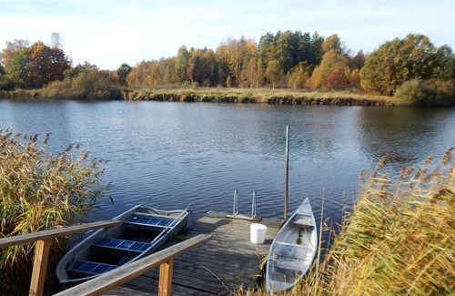 The house has a sauna, russian bath, tabletennis, pool, football-table, a rowing boat, a canoe etc.
