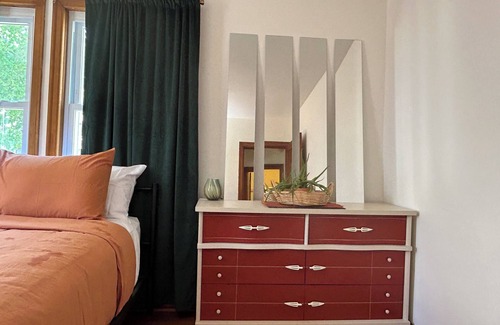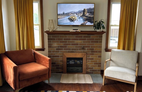 Enjoy your stay near Fort Leonard Wood in our historic home within eyeshot of the famous Route 66! Our single family home boasts original hardwoods, cheerful art deco, and a fully equipped kitchen ready to host your family. We are conveniently located within walking distance of local cuisine, minutes from down town Waynesville, and just 12 minutes from the post. Our home features high speed wifi and a smart tv, as well as a spacious and fenced back yard.