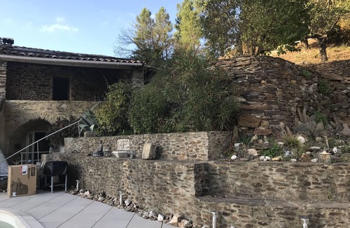 Restored farmhouse from the 1630s which has retained the charm of its exposed stones and vaults. Ideal place for lovers of nature and calm, the farmhouse is perched in the middle of a forest of chestnut and pine trees. the impression of being alone in the world while finding within 10 minutes all shops (supermarket, bakery, tobacco, butcher ... etc.) Sunny terrace with swimming pool and deckchairs. + covered terrace equipped with a barbecue (gas). 5 bedrooms, 3 bathrooms, dining room with fireplace, fitted indoor kitchen + summer kitchen also fully equipped, a small lounge ideal as a reading area, games for children with library (children / adults books available and some board games). Washing machine, dryer, hair dryer in each bathroom.