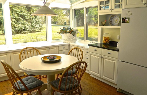 Peaceful Valley Beach House is the original Ranch House for Peaceful Valley Ranch, once a mid-century summer vacation retreat or dude ranch and camp. While fully updated, PVB House maintains its original charm, and you'll find all here at your home - away, without over packing. Bed linens, comforters, kitchen, bath and beach towels are all provided, and a washer and dryer make it unnecessary to pack more clothes than you'll need. The fully-furnished kitchen with breakfast nook is equipped with Cook-top stove, Microwave, Toaster, and Coffeemaker, along with an assortment of pot, pans, cooking and serving utensils,dishes, glassware and plasticware.