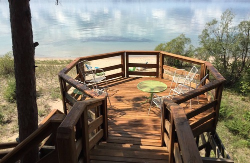 Peaceful Valley Beach House is a private retreat set back from the road on a 1+ acre lot in Peaceful Valley Ranch, on Lake Michigan's East Grand Traverse Bay. Here you'll find beauty and serenity, and feel a million miles away, even though supermarkets, restaurants, golf courses, spas, retail shops, and casinos are within a 5 minute drive. Centrally located, PVB House is a 15 minute drive from downtown Traverse City, Cherry Capital Airport , Old Mission Peninsula, Wineries, and Elk Rapids. There are miles of beaches to walk, Petoskey stones to find, and the Big Lake to swim or boat in. Or spend the days sitting back in your beach chair with a good book, and relax on the PRIVATE 120' WHITE SAND BEACH while awaiting a SPECTACULAR SUNSET OVER OLD MISSION PENINSULA, and roasting s'mores over a fire pit on the beach. Here you'll find swimming, sunbathing, kayaking, fishing, and sightseeing, and the sunsets at the end of the day and their "afterglow" sublime!