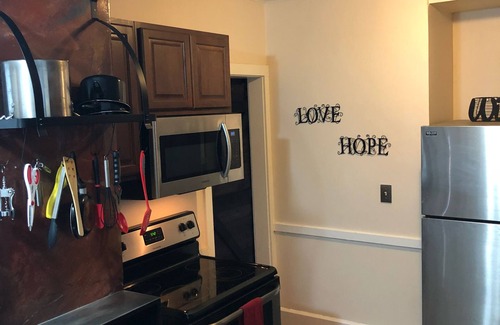 This home is newly renovated. 5 min to downtown Lansing, Sparrow hospital, GM & MSU. Small new kitchen with new counters. 1 bdrm with king bed & 1 bdrm with new Full murphy bed also used as dining rm, 3 big screen TV's with intrnet ( roku) . Large living rm, w/d in basement, private gated patio great for dogs. Pet fee $25 per pet. There is a park across street.Usb outlets next to beds & on new counter tops. This is a duplex with an upper unit & lower unit. There is a park directly across the street. Private driveway! .Its a great place to stay for the money! NO parties at this residence period!!!! Dogs need to be crated when owners leave! Thanks, Matt
