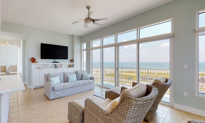 Best-rates for the Galveston condo starts from $323 per night with includes Air Conditioner, Pool, View, Sports/Activities, Wheelchair Accessible, Balcony/Terrace, Guest Services, Barbecue/Outdoor Cooking, Internet, Laundry, Parking, TV, Oceanfront, Bedding/Linens, Fireplace/Heating, Child Friendly, Hot Tub, Ocean View, Accessibility, Security/Safety, Wellness Facilities, Entertainment, Kitchen StayAndPlay offers fully equipped golf villas, golf hotels, golf resorts, luxury golf cabins, and exclusive golf retreats, making it easier than ever to find your perfect golf escape — ideal for families, peaceful getaways, or pet-friendly retreats with the whole crew.