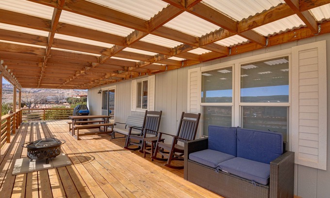 13 Mi to Lake Powell: Mtn-View Home w/Deck & BBQ is located in Big Water. 13 Mi to Lake Powell: Mtn-View Home w/Deck & BBQ provides accommodation, featuring Balcony/Terrace, Security/Safety, Wellness Facilities, among other amenities. This House features Balcony/Terrace, Security/Safety, Wellness Facilities, to make your stay a comfortable one.