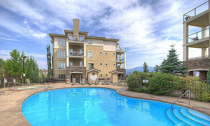 Pinnacle Pointe features outdoor pool and hot tub, perfect for the kids after a long day of enjoying Kelowna. The complex also features an air conditioned fitness room.