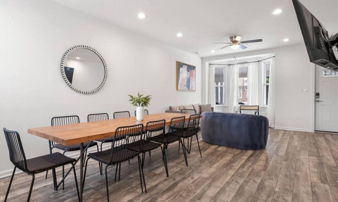 Our spacious 5-bedroom, 3-bath beach house blends comfort, style, and convenience in the heart of Atlantic City’s lively Orange Loop. Newly renovated with HDTVs in every bedroom, this 1,750 sq ft home sleeps up to 10. Step through your private back door into Tennessee Avenue Beer Hall, sip morning coffee on the upper deck, and enjoy being just steps from the beach, Steel Pier, and Hard Rock Casino.