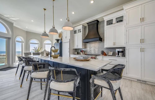 14 Collier Beach, Hilton Head Island is a stunning oceanfront estate that offers a state-of-the-art chef's kitchen, an open-concept living and dining area leading to an oceanfront pool, deck, and grill. The home features a luxurious master suite with breathtaking views of the Atlantic Ocean, a marble bathroom, and a free-form tub. With a private boardwalk to the beach, this designer oceanfront house is the ultimate retreat for your family and friends. Relax and unwind in the main open-concept living area, perfect for entertaining. Additionally, enjoy the convenience of a private elevator and a garage-level bar area stocked with games for endless entertainment. Whether you're seeking relaxation or adventure, 14 Collier Beach offers the ultimate vacation getaway.