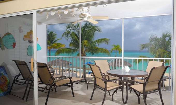 Our remodeled, non-smoking, second floor, condo is your vacation paradise! The crystal clear turquoise water, pristine sandy beach, pool & jacuzzi, amazing snorkeling and dramatic sunsets can all be seen from the living room couch and are just steps away from the screened in balcony where you will enjoy breathtaking views.