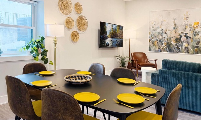 Welcome to your perfect home away from home! This spacious 1,500 sq ft 2 bed, 2 bath apartment features 1 king bed, 2 queen beds, a large living room with a comfy sectional, and a fully equipped kitchen with modern appliances. Enjoy spacious bathrooms, thoughtful design, and a private parking spot. Whether you're here for work or relaxation, this stylish space offers the comfort and convenience you need for an unforgettable stay!
