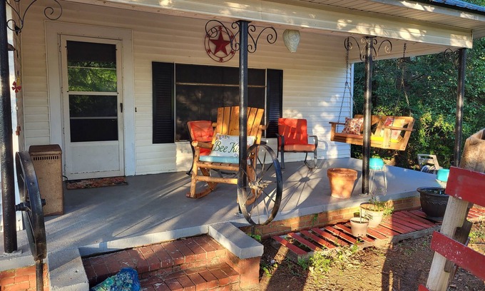 Come visit Jefferson, TX! Close to lakes, adventuring, and historic downtown Jefferson. Here you'll find antique shops, dining, live music, and more! The house is on 3 private acres with a huge privacy fence. The property is fenced in for the furry friends! You'll be comforted know your vehicle and boat and safe. There is plenty of space for a boat turn around. Relax on the front porch swing.
