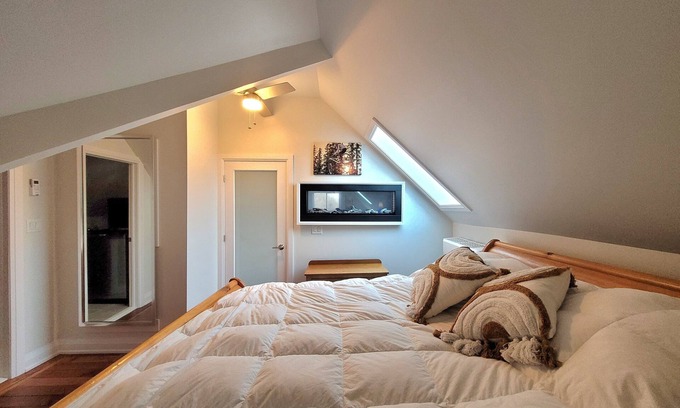 As you settle into this 1-bedroom, 1-bathroom rental, you'll find a BBQ grill, a fireplace, and air conditioning. Enjoy the WiFi and TV. Bathroom amenities include a hair dryer, towels, and toilet paper. Prepare a home-cooked meal in the kitchen, complete with an oven, a stovetop, and a refrigerator, as well as a coffee maker, an electric kettle, and an ice maker. And because there's a washer and dryer, you can go a bit lighter on your packing. Other amenities include bed sheets and heating.