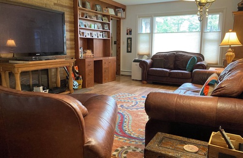 Home has 3 bedrooms (King bed and two twins) with two full bathrooms and one half bathroom. Full kitchen and dining room with two living rooms, including two queen air mattresses available. Pet friendly with large assortment of board games. Beautiful property with mature trees, a patio set, bonfire pit, hammocks, disc golf, tree swing, trampoline, and grill. There is a 24' wide x 34' deep pole barn with a 12' high door available for your use. The back yard is partially fenced in and backs up to a wooded area. The yard is plenty large enough for a tent or camper as well. 10% Discount offered for weekly rentals and we are happy to add twin beds to the bedrooms or switch them out for queens depending on your needs and sufficient notice.