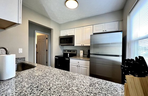 This cozy two bedroom apartment is part of a larger complex in Middletown, Ohio. Live like a local with plenty of room for four to sleep comfortably in our two bedroom and one bathroom unit. Close to I-75 and just an exit up from the Monroe Outlet Malls, there is plenty to do in this part of town! Relax on the comfortable sectional couch to watch TV on your favorite app, or grab a bite and sit at the bar table to eat! Relax on the comfortable sectional couch to watch TV on your favorite app!