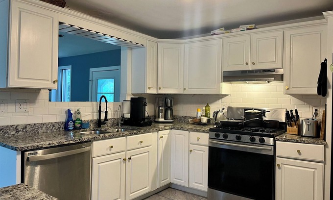 Sharon is waiting for you at this enchanting 4-bedroom bed & breakfast, just 15 minutes from Gillette Stadium. Perfect for World Cup fans, enjoy private driver service to and from the games, plus the option of homemade breakfast and dinner. Each room has its own charm with a king bed, two queen beds, and a cozy twin bed. After the excitement, gather around a glowing fire in the backyard firepit every night, or relax on the patio with the grill and smoker. With heating, AC, and thoughtful touches throughout, this tranquil retreat is your home away from home during the games.