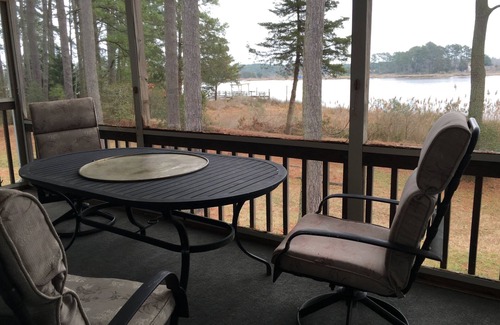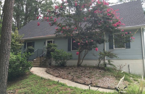 If you're looking for an oasis of calm, Cardinal Cove is the place for you! This 4 BR, 2½ bath waterfront home on Deep Creek’s west bank is located on 16 lushly wooded acres. A private road amidst 100 foot pine trees ensures your stay here couldn't be any more relaxing and carefree. Walk out at sunrise onto your own private boat dock (water depth 3 ft + high tide) throw in a crab pot or a fishing line, power up your boat and within minutes you’re cruising the waters of the Chesapeake Bay!