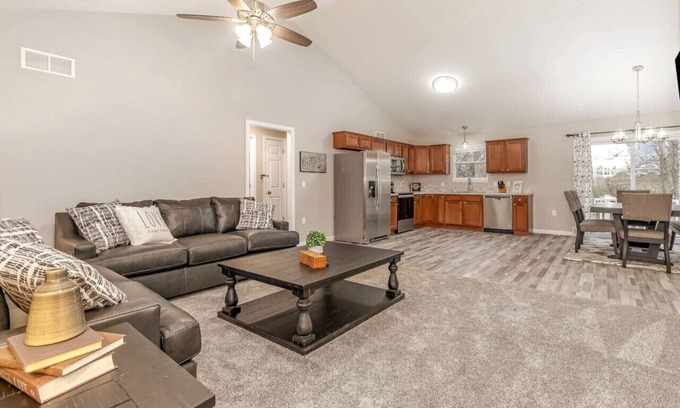 A blend of comfort, style, and convenience greets you as soon as you enter our newly built ranch home. While decorating this inviting retreat, we have worked hard to create a home away from home feeling for our guests.