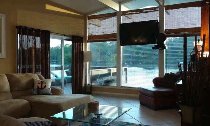 Closer in than most lake homes, you are only 2 1/2 miles from several food places, gas, grocery, auto, banking, red light, etc. all on paved roads including the driveway. Gas for your boat also available on the lake only about 2 1/2 miles away!