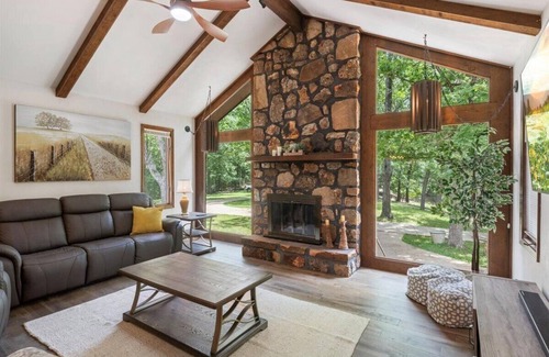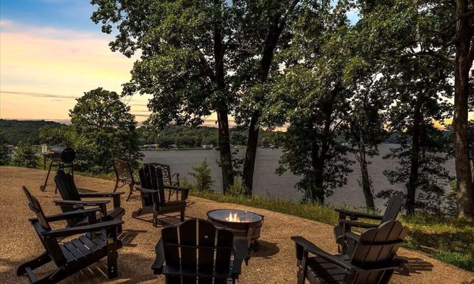 Outdoors, View Haven delivers big on fun and comfort. Spend your day hiking through the trails or just enjoying the amazing view from the hillside point the house sits on. You'll see plenty of wildlife on this property including deer, small fox and bald eagles. If you're a bird watcher, you'll be in Ozark heaven spotting all our varieties.When you're ready for water fun, head down to the dock that is easily accessible by walking or car and has very gentle 2” high steps on the approach. Take in some rays on the expanded sun deck, or enjoy the breeze in the expansive covered deck. Outfitted with a 6x15 swim mat, easy exit Wet Steps swim ladder, floaties, and water gear including 2 adult kayaks, 1 child kayak, and 1 paddleboard, you won't run out of options for a day full of fun. Lounge or fish from the dock using the provided fishing poles and tackle, then gather around the fire pit or enjoy a lakeside meal from the propane grill.