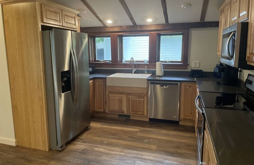 1825 Cottage - The original frame of this recently renovated home was post and beam construction, but the whole interior is new. The original beams are exposed, and old building materials have been re-purposed - giving this an upscale mix of vintage architecture and contemporary style.