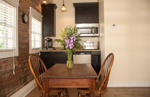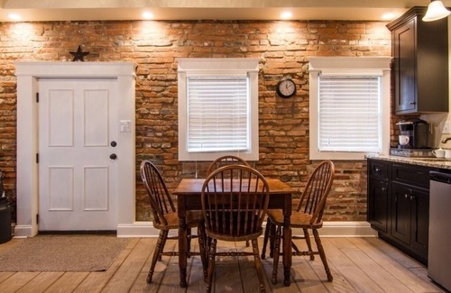 'The Riverfront Guest House' located at #422 Rear S. Main Street centrally located in the historic district of St. Charles, Missouri is a charming, upscale brick guest cottage built in 1830's and 100% remodeled in 2013 for the vacation rental experience and sleeps 4 people. The Riverfront Guest House was originally a wheelwright shop that made and repaired wagon wheels for the thousands of new settlers and explorers coming through St. Charles and heading westward. Today it has been completely refinished with beautiful modern amenties while restoring much of the original, unique qualities such as exposed brick walls, and large exposed wood beams. This ambiance continues to the surrounding area of Main Street St. Charles and Riverfront. With over 10 blocks on the Historic District National Registry, its one of the largest districts in the country. Panoramic views of the Missouri river greet you right out the front door.