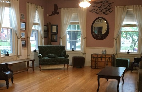Our Coast of Maine House is a 4 bedroom 4000 square ft 1856 ships captains mansion ideally located just south of Portland and just north of dreamy Kennebunkport. We have 15 rooms, a 12 person dining room, 4 bathrooms including a beautiful jacuzzi, 11 ft ceiling living room sitting 14 and 3 fireplaces. We are surrounded by 7 churches, 5 restaurants, 4 craft breweries and on a popular bike path.
