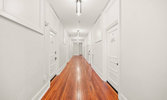 1876 at The McKey includes a bedroom, seating area, and a bathroom. Located on the fourth floor and named to honor the year that the first agricultural pecan tree was planted in Lowndes County, Georgia. Access to coffee maker and microwave. Above Gud Coffee company and within walking distance of many great restaurants and things to do in Downtown Valdosta. 1876 has a spacious standard bathtub and shower with great high end amenities.