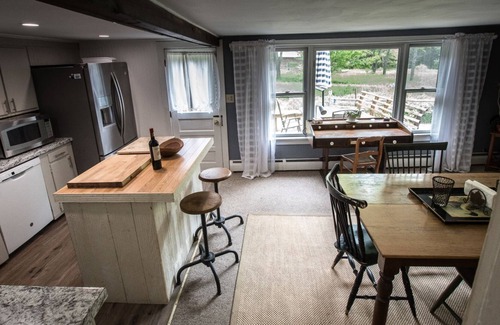 Relax with a rustic, open kitchen-living space and a picture-perfect view of nature. There are mountain views and it is a short walk to the river for kayaking or canoeing. There is a 'maze' to walk around in the backyard for a relaxing stroll. The bedroom with the king bed is actually two twins put together and can be pulled apart if needed. Please note on the reservation that these beds would need to be separated for individuals who do not wish to share a bed.