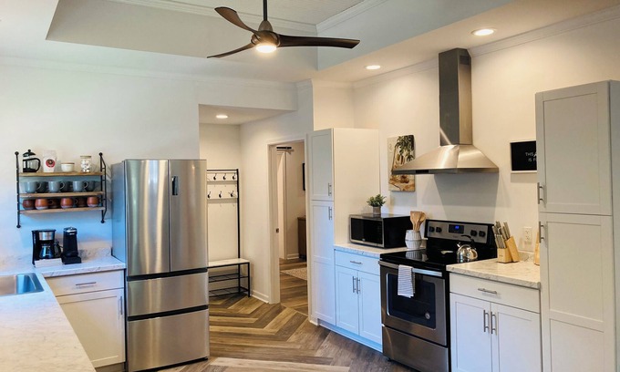 Welcome to The 1895 House! Centrally located and full of charm, this historic home was built in 1895 (hence the name), but has undergone a full renovation. The open concept floor plan features 3 bedrooms and 2 full bathrooms, modern kitchen, and a 65-inch smart TV in the living space. On the exterior, guests will enjoy the front porch swing and convenient off-street parking. The house is a short walk or drive to some of Owensboro's best cuisine and entertainment.