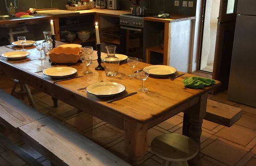 Renovated in 2012 and equipped with all comforts, La Grange sits on a property of approximately 3ha with manor, cellar, meadows, woods and river. It is next to the manor inhabited year-round by the owners but it has its private space with terrace (barbecue) and independent garden. The fenced pool is located about thirty meters from the house, in the middle of the pretty vegetable patch. Access is via the building of the old winery.