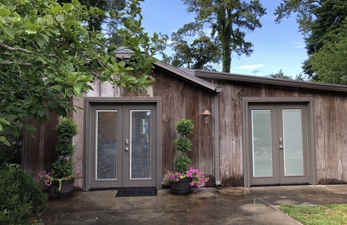 Located just off of the patio and carport of the host's "Main House", this "garden" Guest Cottage is situated on 1.7 acre fenced/gated property in Historic Sterling Grove neighborhood near downtown (3 blocks away) Lafayette. Cozy, tastefully appointed and practical, this cottage (central AC/Heat) has 3 bedrooms and one (shower only) bathroom, den space with Table Seating for 4 (additional chairs avail) and slipcovered sectional queen sleeper sofa, fully stocked galley kitchen (with cookware,utensils/basic spices/oils/foil etc), washer/dryer/iron, High speed Wifi , 4 TV's (3 Smart),XBOX 360, separate alarm system. Covered off-street parking avail for one vehicle (addl space is avail but not covered). Guests are welcome to use patio with grill that's situated between cottage and main house, as well as the basketball goal just off the carport and outdoor ping pong table . Formerly a rustic artist studio for previous owner, this cottage, though not historic itself, compliments the 1901 main home which is listed on the Natlional Historic Register, and has been modified to accomodate up to 6 guests ideally, and 8 if using sofa bed in den. New chlorinated swimming pool just steps off of the cottage patio space .