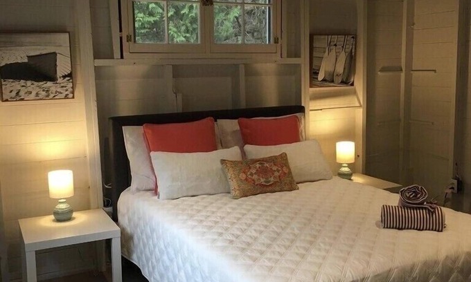 The cottage can accommodate up to 4 people with 1 bedroom (1 Queen Bed) and in the main living area there is a stacking day bed which can either be 2 Twin Beds or 1 King Bed. Currently we do not provide linens, however we do provide blankets and pillows. We ask that you bring your own sheets, towels, tea towels, bath mats. There is 1 bathroom with a shower. There is a small hot water tank for showers and doing dishes. Some essentials will be provided (small hotel sized shampoos, soaps).