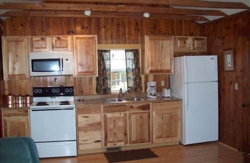 Cabin was built in the 50's but updated to modern features. Knotty Pine walls and vaulted ceiling with beams give it so much character.
