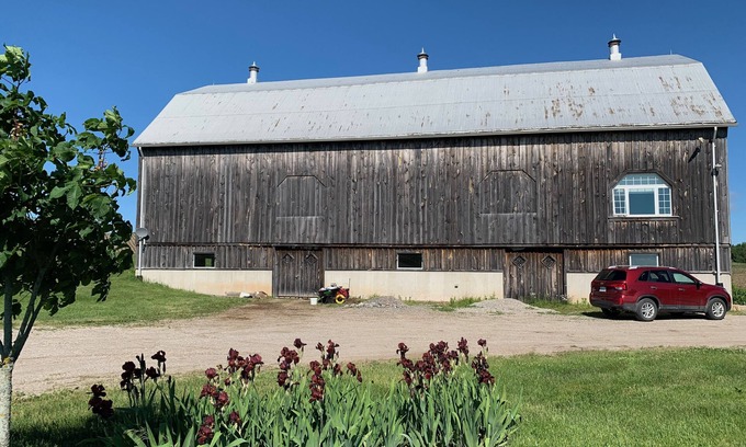 The beautiful 68-acre farm is yours to explore, with ponds, walking path, and ponds. Next to the Grand River, 10 minutes from Paris, 20 minutes from Brantford, 45 minutes from the GTO. The modern apartment is within a barn built in 1885. Apartment is 2 stories, each 640 square feet with full kitchen, living room, dining room, open concept and gorgeous views of Grand River valley.