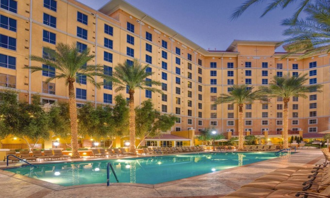 Plan a family-friendly stay at our Grand Desert, a lush oasis just a mile from Las Vegas Boulevard! We are close to all the casinos, restaurants, and entertainment options that make Vegas famous, but our hotel was designed without an onsite casino to create a comfortable, welcoming retreat for families. Instead, we bring entertainment to you with 3 outdoor pools, a 3D movie theater, and 4 outdoor hot tubs.
