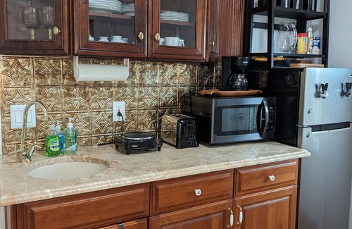 This cozy apartment has a living room with sofa Bed, Queen Bed-room, Bathroom, Linens, Towels, Roku TV with internet streaming services, enjoy your favorite Netflix series in the Bedroom, (INTERNET TV) A dinner table, kitchenette with necessary utensils for your stay and private patio with BBQ, table and hammock offers our guests the sweet serenity of a home away from home. Guests will have their own entrance.