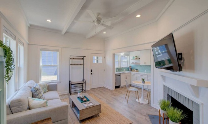 Booking for a one-night stay available during the winter months! Escape to The Bungalows, a trio of coastal retreats managed by Bloomer Estates Vacation Rentals, where every moment promises relaxation and adventure. These modern havens offer the ideal getaway just steps from the shoreline, local shops, and eateries. The Bungalows #1 invites you to unwind with movie nights by the large TV or on the private covered porch with a fire pit. Inside, discover a cozy bedroom with a queen-size bed and en suite bathroom. The fully equipped kitchen and coffee bar ensure culinary delights, while beach access and nearby attractions promise endless exploration. Forge lasting memories in comfort and style.