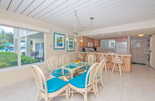 This ground floor unit is bright, airy, and tastefully decorated in tropical island decor. It is fully equipped with all the amenities and conveniences of home.
