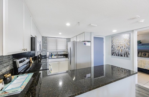 Your unit has a fully equipped kitchen, a "high and grand" king size bed in the master bedroom and bunk beds in the guest room. Coin operated washer and dryers are located on this floor right in front of the elevators. This unit has a Keurig style coffee maker.