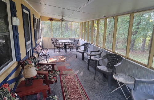 The single level ranch cabin is off a private drive and away from any traffic. Lakefront quiet cozy peacefulness is our by pines take you to Lake Hartwell and your private boat dock with a swim ladder. The dock is always in deep water. Tie up your boat or fish right off the dock. (You may fish anywhere on Lake Hartwell with either a Georgia or South Carolina fishing license).