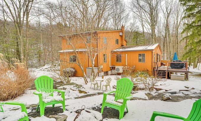 2-Acre Plot: Family Carmel Cabin w/Fire Pit! is located in Carmel. 2-Acre Plot: Family Carmel Cabin w/Fire Pit! provides accommodation, featuring Pet Friendly, Bedding/Linens, Fireplace/Heating, among other amenities. This Cabin features Pet Friendly, Bedding/Linens, Fireplace/Heating, to make your stay a comfortable one.