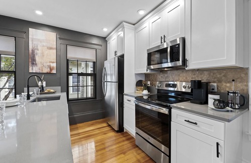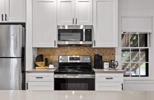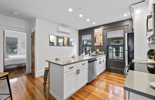 Conveniently pull into your reserved parking spaces and step into this historic pre-1900 home "The Driftwood". Your apartment is conveniently located right on the first floor. As you head in you'll find the first bedroom is light and bright, complete with king size bed and plenty of room to unpack. The first floor is a nice open space with a newly renovated kitchen, all stainless appliances, and large bar with plenty of room for everyone to gather for meals. The first floor bathroom includes a double vanity and large Kohler soaking tub.