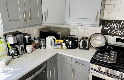 Coffee & Tea: Available in the cabinet to the left of the sink.