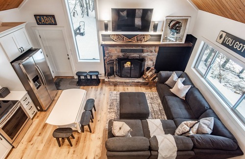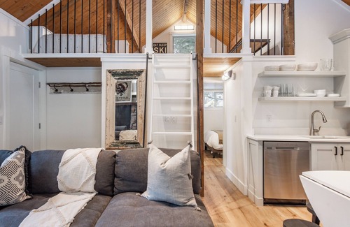 The cabin is small but utilizes every square foot. Come slow yourself down and enjoy the simple life as it was intended to be- you won't regret it and will want to simplify your life after spending a little time here. The main level consists of two bedrooms, a small full bath with shower, living room with a wood burning fireplace and a full kitchen. The loft is accessed by a steep ladder no recommended for small children but the older kids will love it!