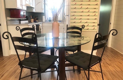 Come explore Elephant Walk, a dog-friendly compound, walkable to beach and town, designed to make memories for your group. It provides multiple gathering spots both outside and in while ensuring ample privacy at the same time. Our Main House offers giant living spaces to accommodate the whole group and provides 4 very large bedrooms and 3 baths. On the same grounds, there are 5 smaller cottages that offer full kitchens/bathrooms/living spaces and house 1-2 bedrooms each. If you would like to rent the Main House as well as 1+ cottages, please see our VRBO links to the other cottages or message me to check on availability. Host your retreat, wedding party, or reunion here for an unforgettable experience!
