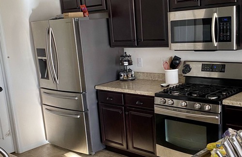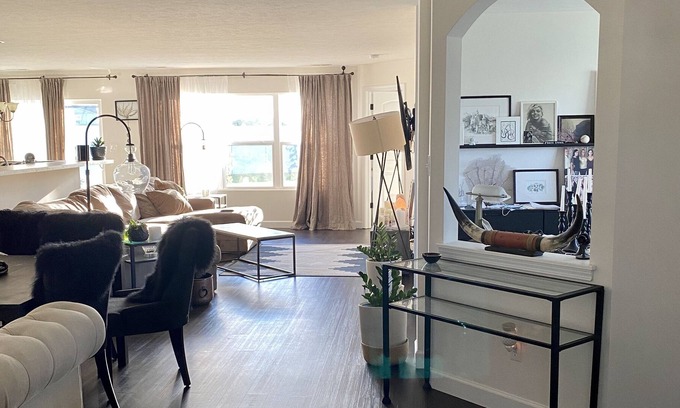 Open concept ranch towne-home with 2 bedrooms, 2 full baths, a full kitchen, an east facing patio off the dinette, living room with a smart TV, dining room, mudroom off the attached garage with a front loading washer & dryer, and an office space. Both bedrooms have smart TVs and blackout curtains for nightshifters. Perfect for 1-2 healthcare travelers or 1 healthcare worker with a small family!