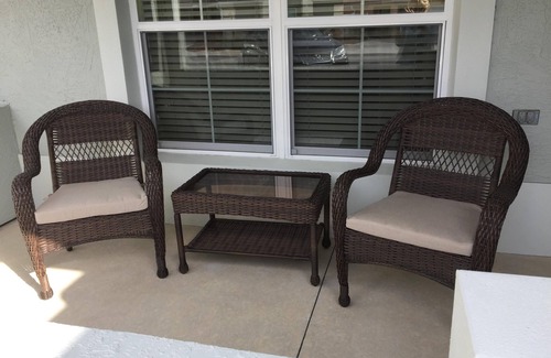 The master bedroom with private bath has a king size bed. Using 3rd bedroom as a Den which has a 47" color TV with internet hookup and Living room has 55 inch tv. It also has a patio door leading out to the screened lanai, Enjoy a glass of wine in the evening or a cup of coffee in the morning in total privacy in your lanai or courtyard area. The guest bedroom has a queen size.