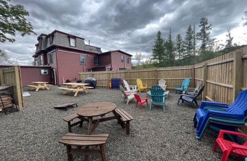 We have two outdoor amenity spaces. They feature two fire pits, BBQs, Adirondack chairs, picnic tables, cornhole and misc backyard games. We include firewood and fire starter in every apartment. The two outdoor spaces are shared between the four apartments.