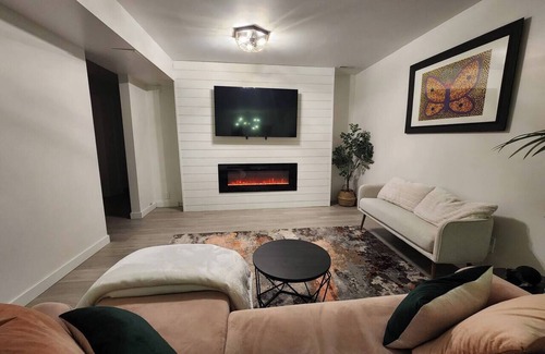 2-bed suite 10 mins from all attractions is located in Southwest Calgary. 2-bed suite 10 mins from all attractions provides accommodation, featuring Wellness Facilities, Fireplace/Heating, Kitchen, among other amenities. This House features Wellness Facilities, Fireplace/Heating, Kitchen, to make your stay a comfortable one.